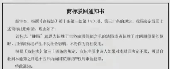 3、“胜眼”意思为超胜于世俗轮回颠倒之见的法眼或者超胜于时间颠倒见的慧眼,用作商标易产生不良社会影响,不得作为商标使用