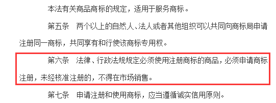 回到本文观点:被驳回的商标还能继续用吗?1.《商标法》第六条:法律、行政法规规定必须使用注册商标的商品,必须申请商标注册,未经核准注册的,不得在市场销售。