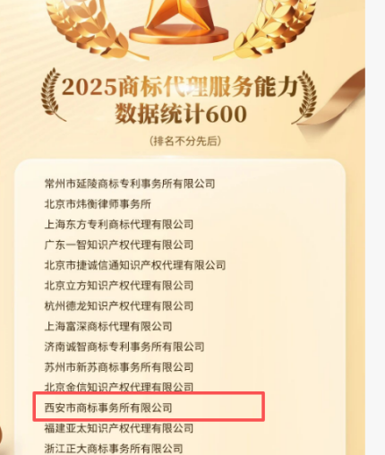 喜报|| 西安市商标事务所荣登中国商标代理机构600强榜单